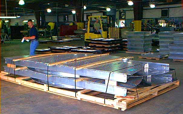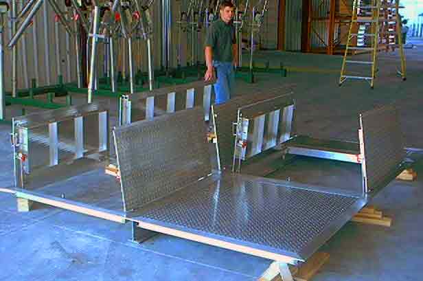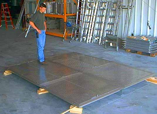 A large 16-leaf wet well/valve vault application. In the foreground is a nine-leaf modular access frame and cover system, utilizing a 6-in. (154mm) I-beam to support the large 174-in. x 120-in. (4.4 m x 3m) span.