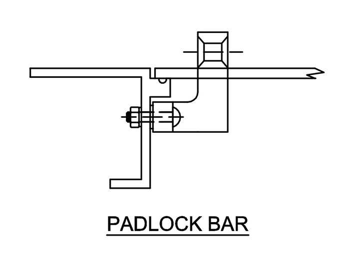 The non-corrosive locking bar is used in conjunction with an owner-supplied padlock. It is an inexpensive and reliable means to lock access covers in the closed position. The locking bar is attached to the access cover frame with T-316 stainless hardware. The locking bar is supplied as the standard locking system on single and double door Series SR, WR, TR, CR and RR access covers.