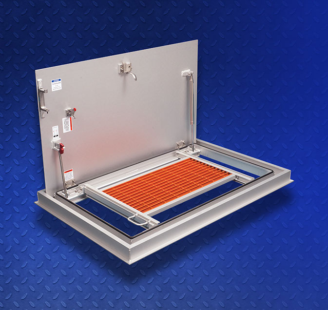 The W2S series is a double door, channel framed access cover with 300 lb. psf (1464 kg psm) load rating. Units are supplied with spring assists and are ideal for casting into top slabs directly above equipment in vaults that do not have provisions for drainage. Please see the drawing page for standard features. The channel frame acts as a gutter to capture water run off and divert it away from the interior of the vault. Although the unit is not 100% water tight, it should be used when water intrusion is a determining factor.