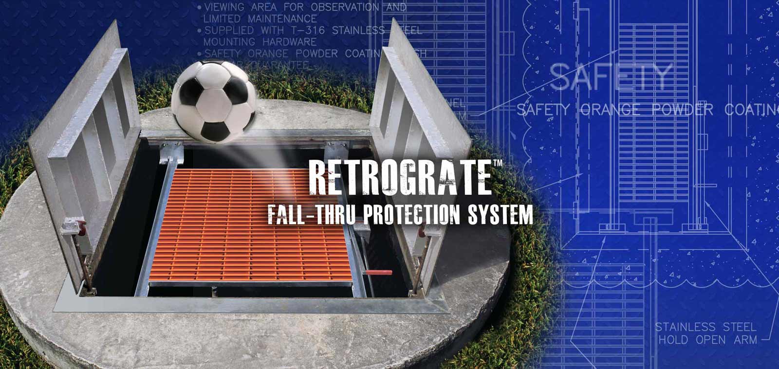 Halliday Products is the inventor and manufacturer of the RETRO-GRATE™ Fall-thru Prevention System!